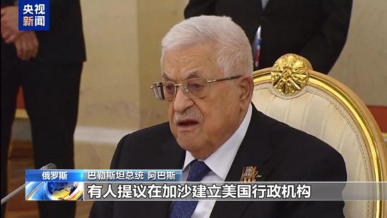 巴勒斯坦总统 阿巴斯:我们反对将巴勒斯坦人民驱逐到国外。这当然是无稽之谈,我们无法接受。我们最近还听说,有人提议在加沙建立美国行政机构。我们明确反对这一点,并已告知相关方。无论是美国人还是其他任何人,都无权进入加沙。